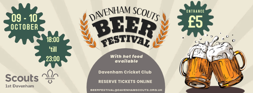 If you’re interested in sponsoring the event, please contact us online or email beerfestival@davenhamscouts.org.uk.